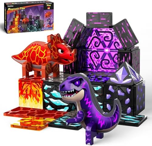 Compatible With Major Brands: Featuring trending adventure themes with lava caves, glowing crystals, and mining worlds, this magnetic building tiles dinosaur set acts as an exciting expansion pack to existing magnetic building blocks or building sets, it blends seamlessly with most major brands, making it a perfect choice for parents looking for creative building toys for kids ages 4-8, while helping children expand their collections with fresh scenes and more ways to play