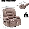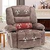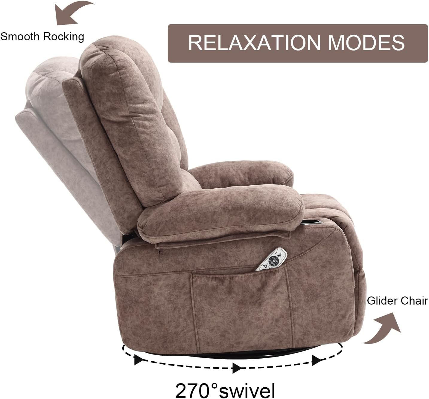 KCQ Overstuffed Electric Rocking Recliner Chair with Massage and Heat Fabric Power Swivel Rocker Recliner Heated Reclining Glider Chairs with Cup Holders, Brown