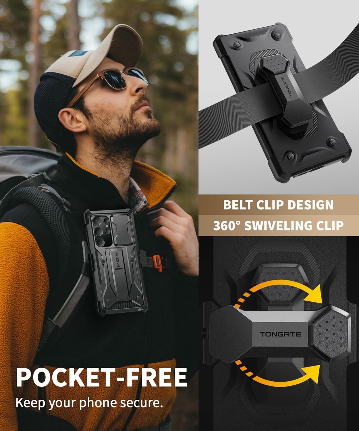 [360°Rotatable Belt Clip] This phone case for Samsung Galaxy S23 Ultra comes with a 360-degree rotatable and detachable belt-clip for user-friendly convenience, that easily attaches to a backpack or belt