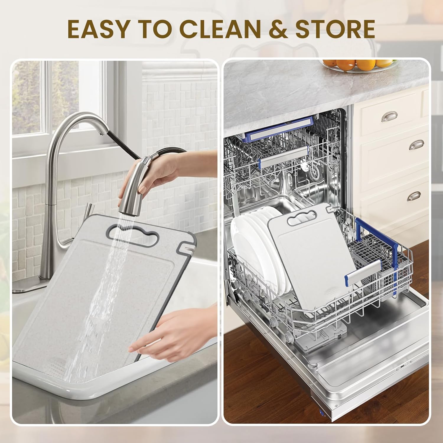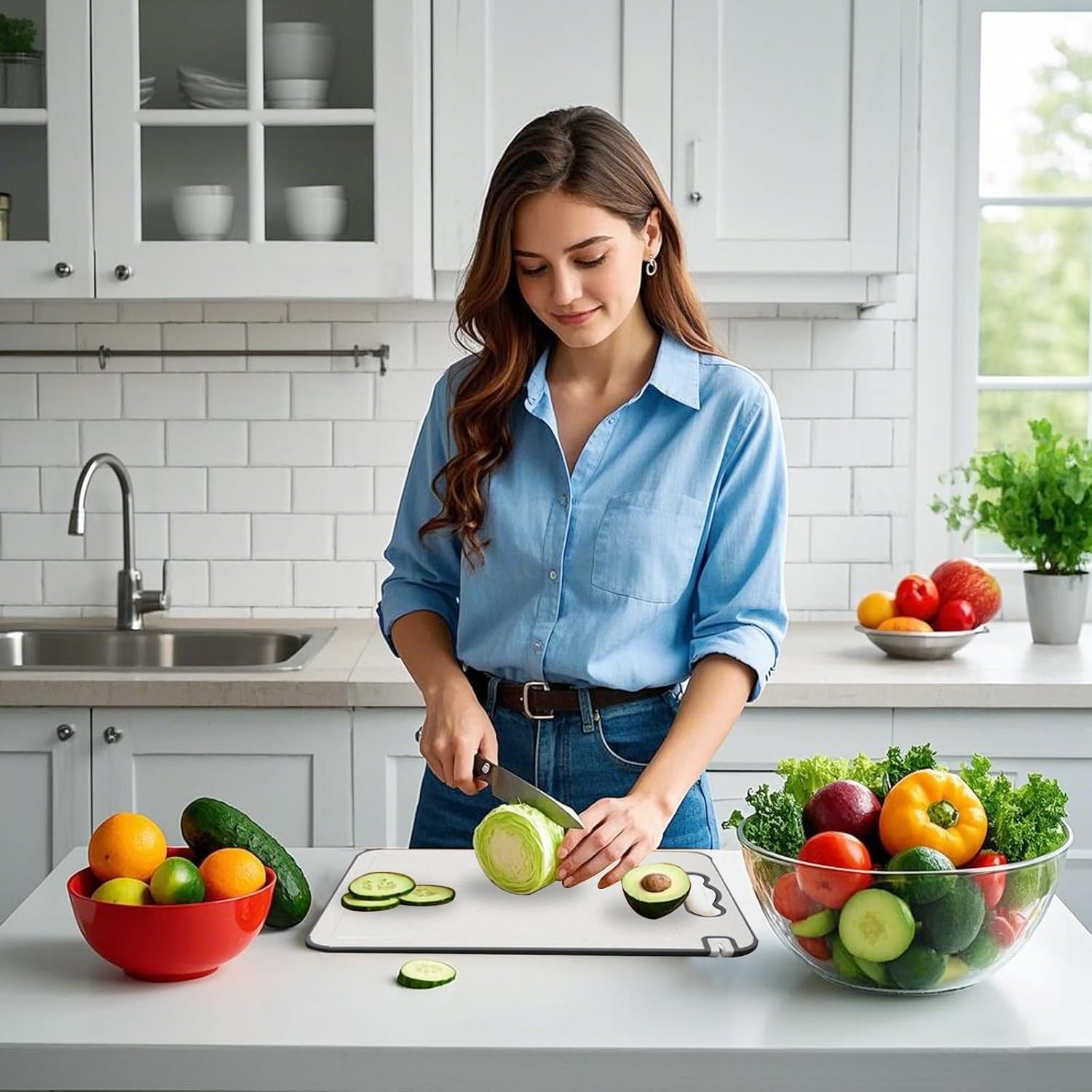 【Lightweight & Effortless to Use】SIZE:14.2*10inch.Weighing just 1.27 lbs with a slim profile, this board is exceptionally easy to handle. Ideal for extended meal preparation, small kitchens, and anyone seeking a practical alternative to heavy, traditional cutting boards