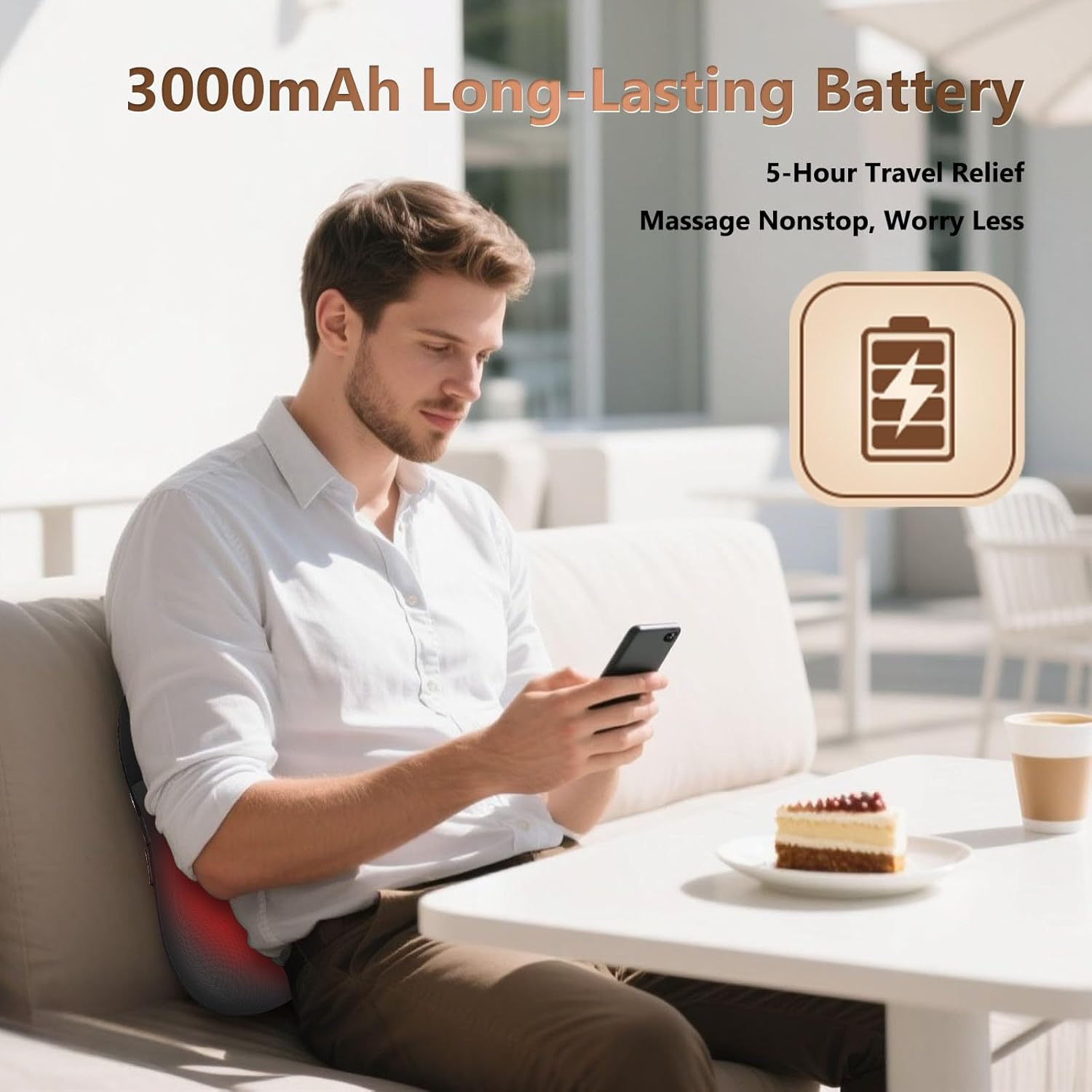 【Cordless and Large Capacity 】This back massager with heat features a wireless design with a robust 3000mAh battery, delivering ultimate convenience and freedom of movement. No more tangled cords or anxiety about short usage times - easily bring this shoulder and back massager anywhere. Whether you're recovering from workouts or managing chronic discomfort, it therapeutic kneading and heat therapy provide effective relief for a rejuvenated body.