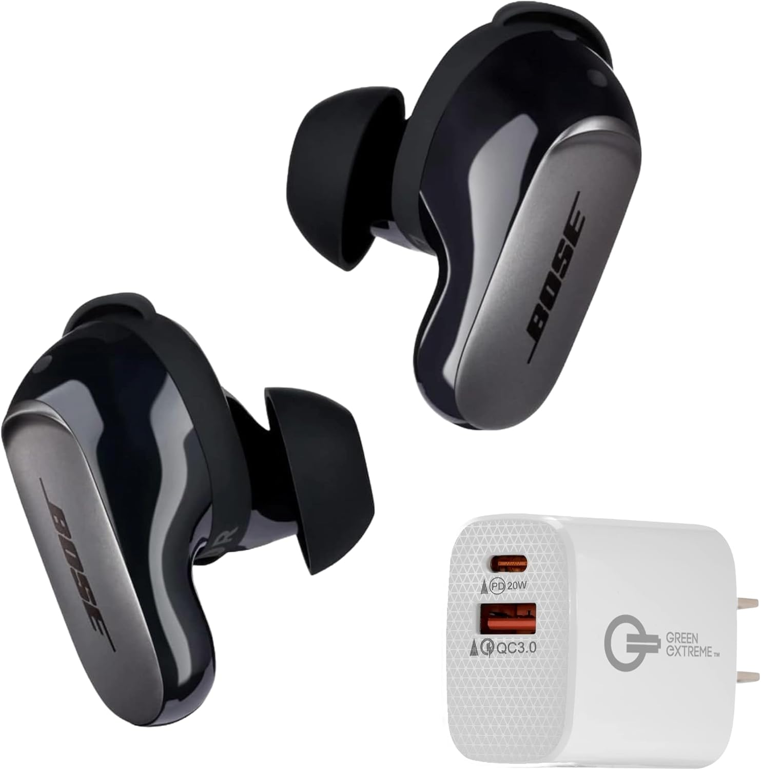 Bose QuietComfort Ultra Bluetooth Earbuds, Wireless Earbuds, Deep Bass, Up to 6 Hours of Playtime and World-Class Active Noise Cancellation Bundle with USB-C/A 20W Wall Charger (Black)