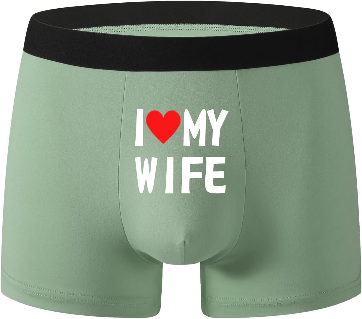 Men's Funny Love My Wife Seamless Boxer Briefs Breathable Stretch Fabric Comfortable and Supportive for Running and Gym Green
