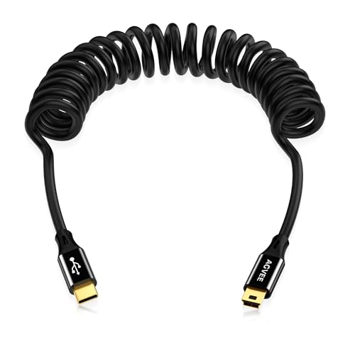 AGVEE 3ft Coiled USB-C to Mini USB Cable, [USB-IF Certified] Charger Charging Data Sync Cord for TI-84, Garmin GPS, Go-Pro Hero 4 3 2 HD, PS3 Controller, Canon Nikon Camera, Blue Yeti, Black