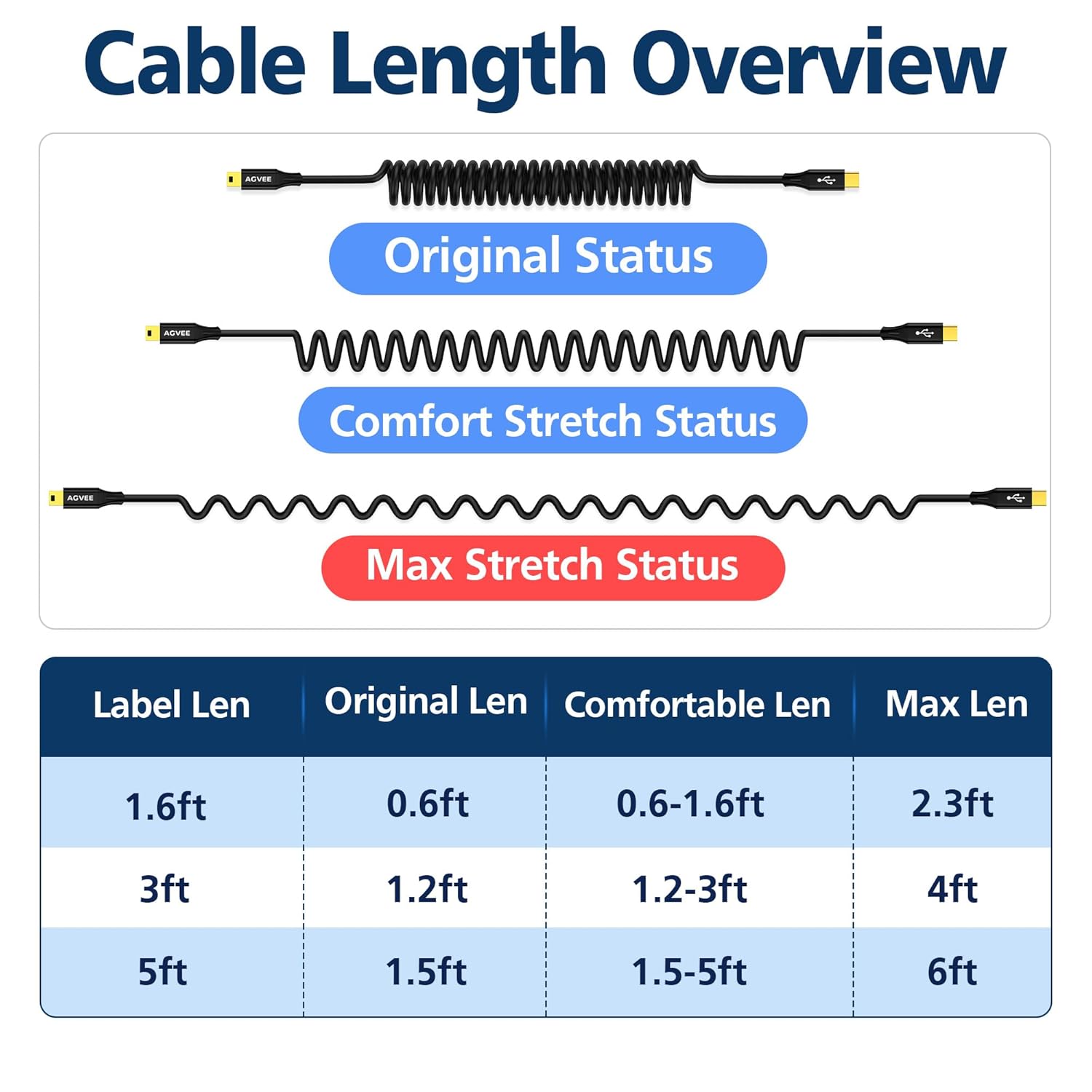 Más información para tu compra de AGVEE 3ft Coiled USB-C to M...