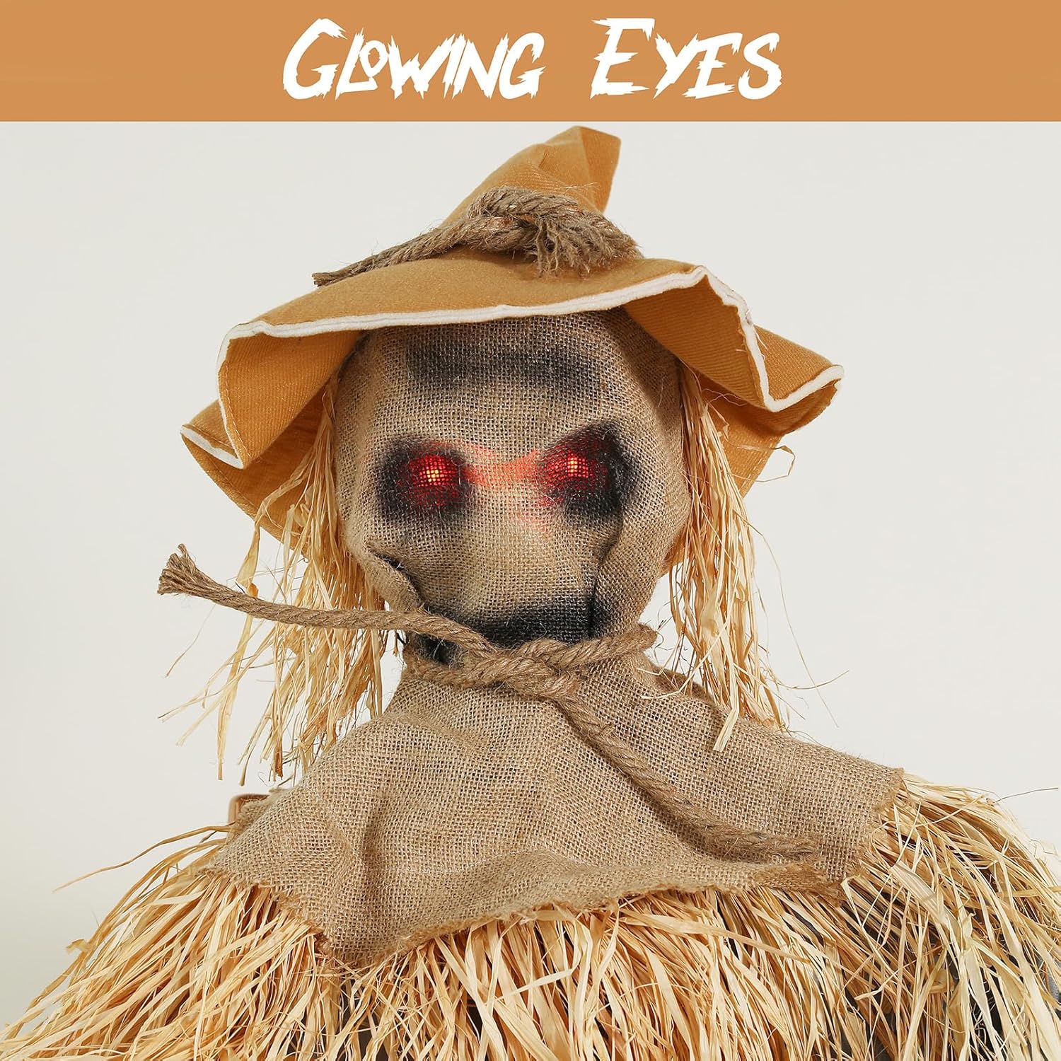 Halloween Decorations- 4Ft Scary Sitting Scarecrow with Spooky Sound Glowing Eyes, Animatronic Scary Props Decor for Home Party Indoor Porch Yard Decoration