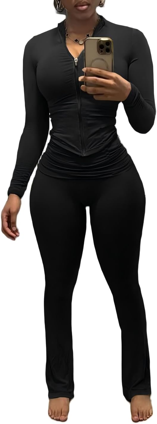 Nimsruc Two Piece Outfits For Women Workout Set Long Sleeve Tracksuit Zip Up Sweatsuits