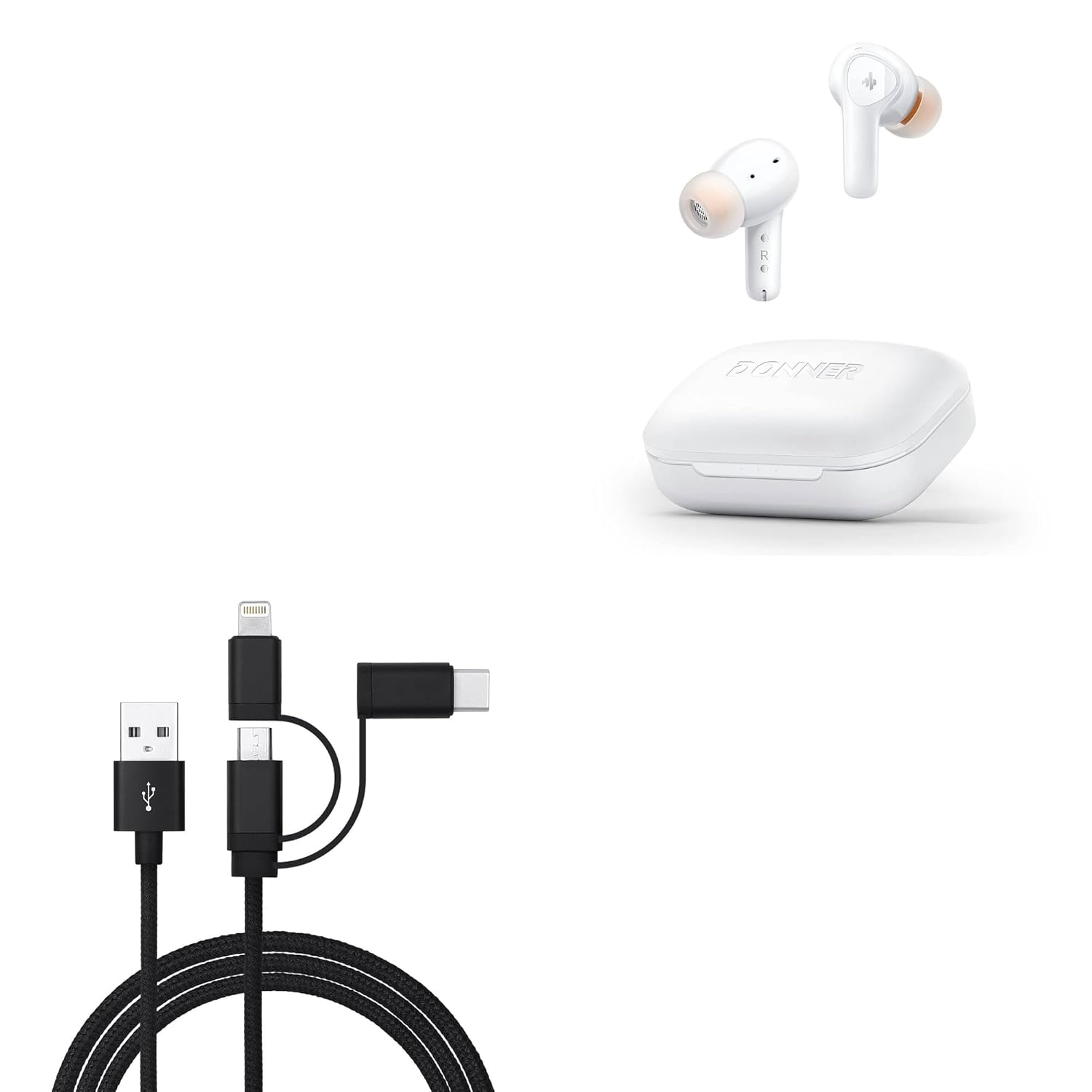 📱 📱 📱 [ALL FOR ONE] BoxWave Cable Compatible With Donner DoBuds ONE. Charges your device using USB TYPE-C or MICRO USB connectors. With the AllCharge 3-in-1 Cable, you can charge virtually EVERY MODERN DEVICE available! Just select which connector fits into your device and start replenishing its battery life! Don't buy 3 separate cables for the various devices you and your family have at home! ⭐ *** PLEASE NOTE, DONNER DOBUDS ONE DEVICE NOT INCLUDED ***