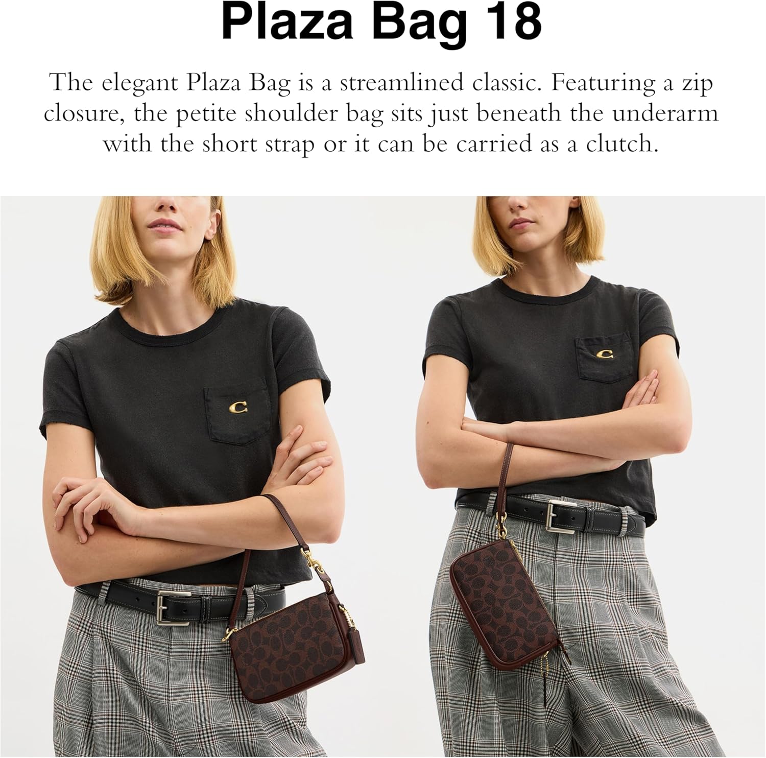 The elegant Plaza Bag 18 is a streamlined classic. Featuring a secure zip closure, the petite bag sits just beneath the underarm with the short-strap or it can be carried as a clutch. This clutch bag features a zipped closure to keep your essentials organized and secure.