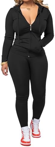 Women Two Piece Outfits Workout Sets Bodycon Legging Jacket Tracksuit Zip Up Hoodie Jogger Matching Sweat Pants Set