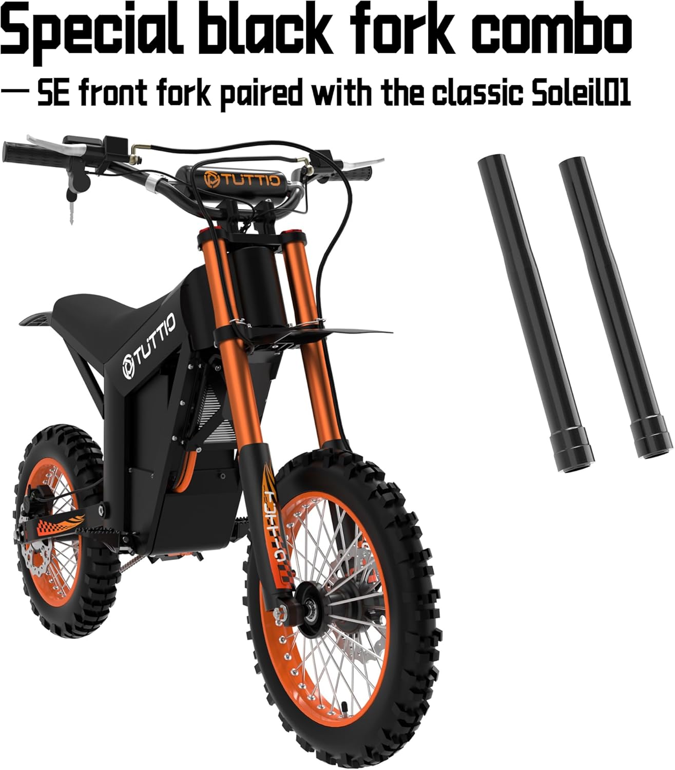 2000W Brushless Motor Powerful Electric Dirt Bike - This tuttio electric dirt bike is equipped with a powerful 2000W motor, which can continuously provide power of 34mph, provide you conquer challenging terrains and experience breathtaking acceleration like never before. Please NOTE: the Black Suspension Fork will be sent out separately and you will get it within 7-12 business days, we appreciate your understanding and patience in advance.