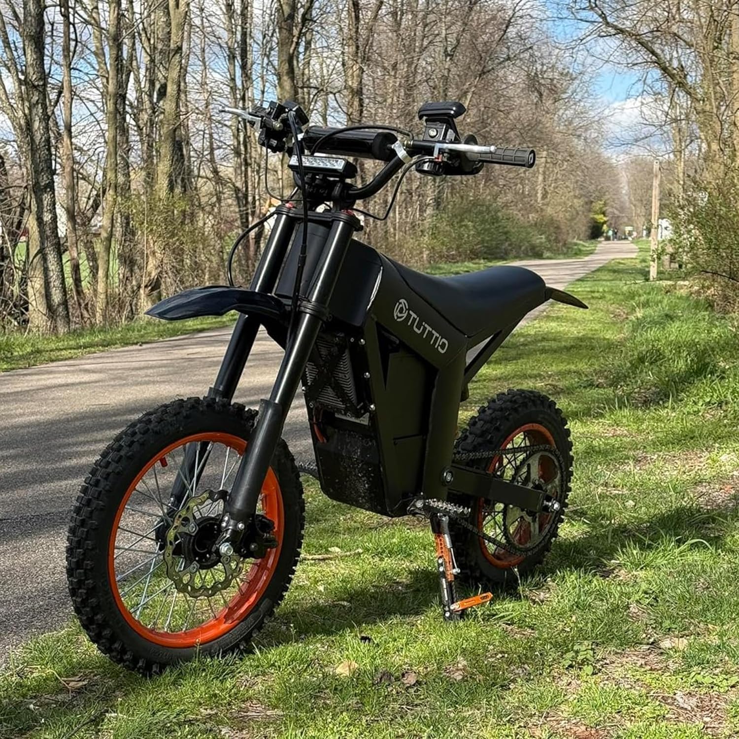 Long-lasting Battery Tuttio Electric Dirt Bike: With a massive 48V 21AH lithium battery, provides up to 35-43 miles (Fluctuates according to factors like load, speed, road surface & temperature). of range with 31% more capacity for an additional 16% more range than other models on the market, this electric dirt bike for adults ensures extended rides, so you can explore more trails without worrying about recharging frequently.Fully charges within 6~7 hours.
