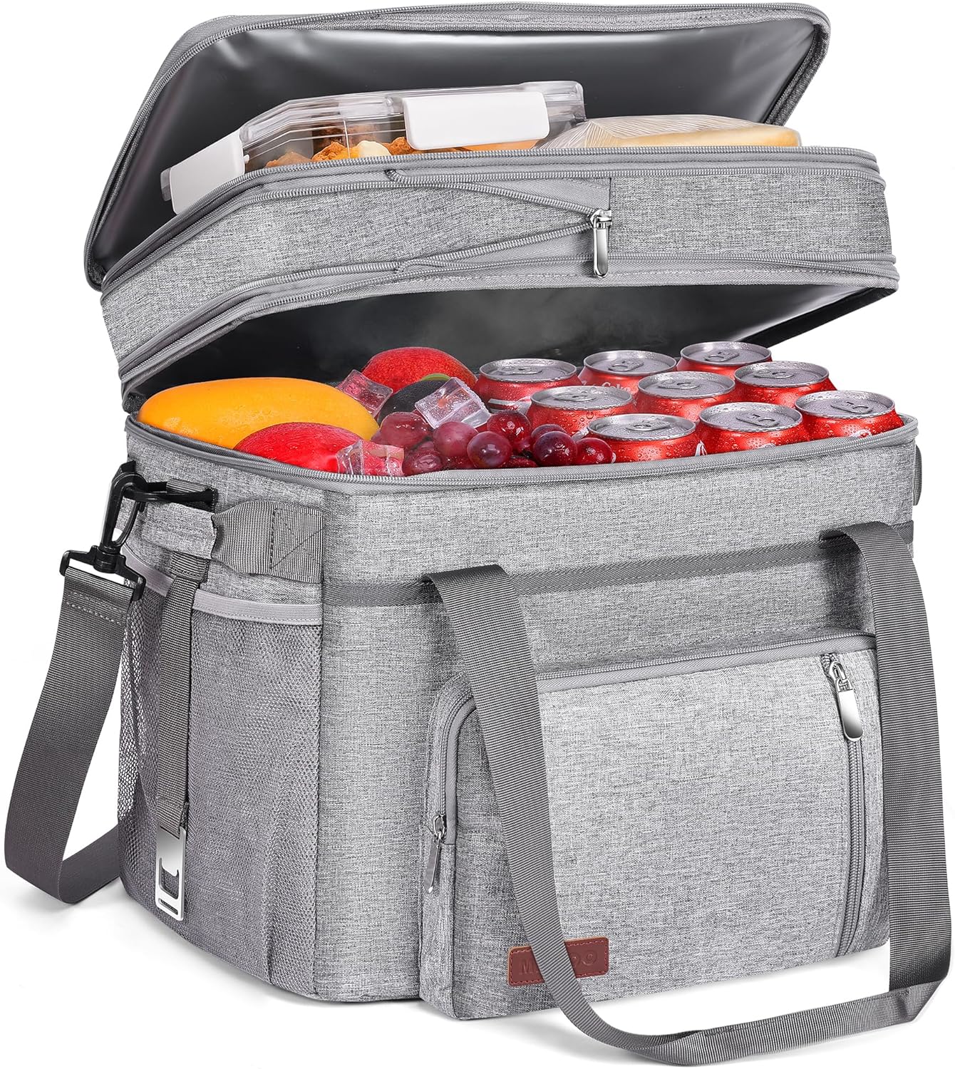 Soft Double Deck Cooler Bag, 60-Can Leakproof Insulated Portable Lunch Cooler, Extra Large Expandable Ice Chest Cooler for Beach, Picnic, Camping, Shopping - MIYCOO