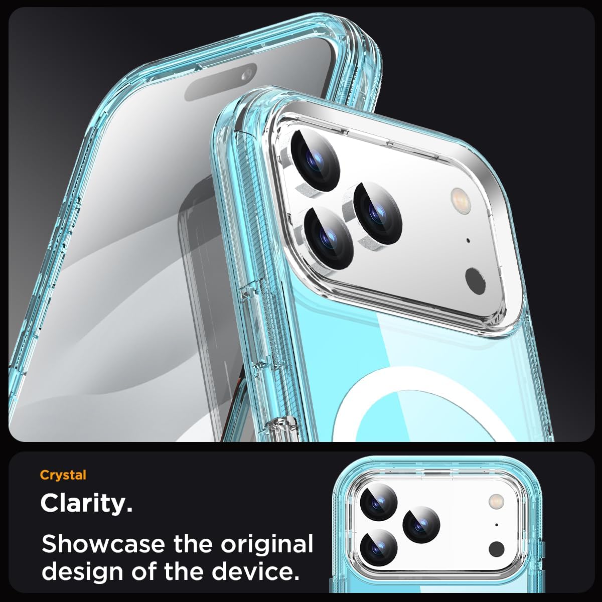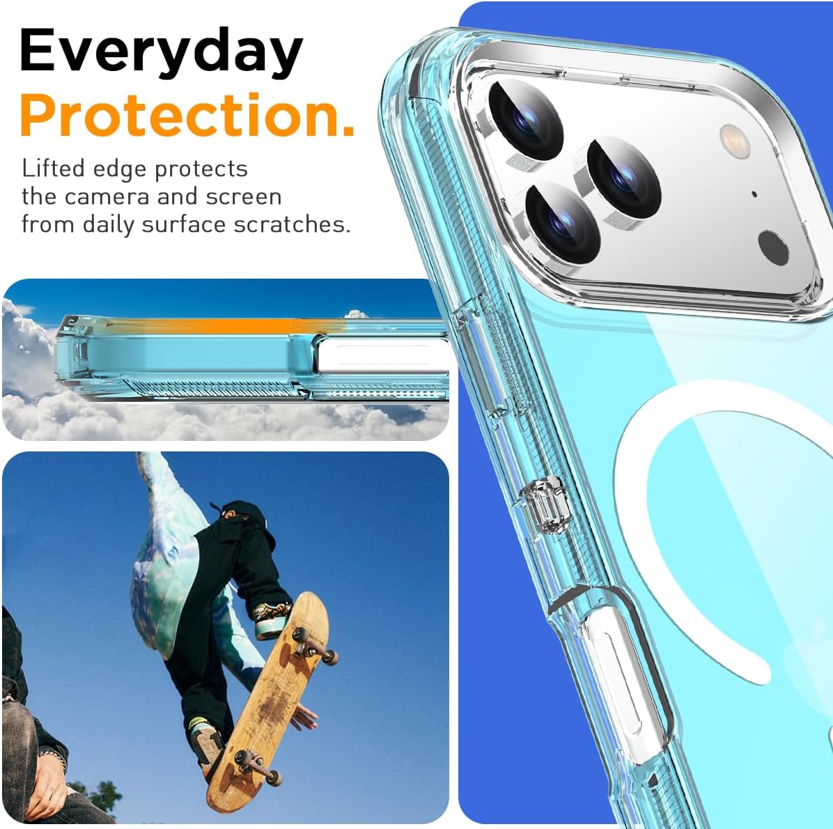 Crystal Clear&Never Yellow+Super Magnet for MagSafe:With 38 X N52 super magnets and upgraded magnetic circle array design,this iphone 17 Pro Max ensures secure attachment to the safe and fast wireless charging.It can firmly connect with all MagSafe accessories such as the MagSafe charger/ring/wallet,Mag Safe wireless charging,car mount,etc.Using high-grade Bayer's ultra-clear TPU and PC material, allowing you to admire the original sublime beauty,while won't get oily when used.