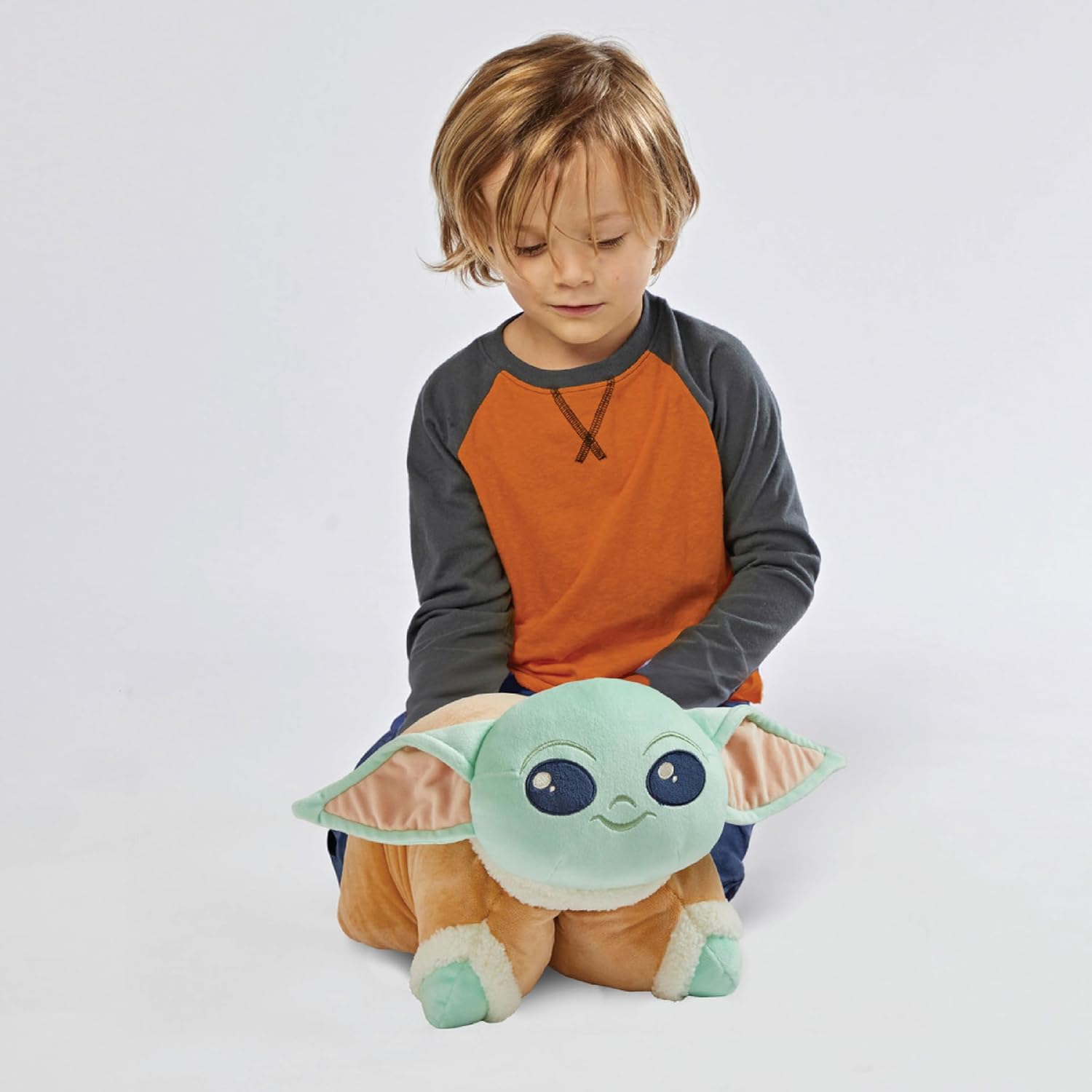 Snuggle with Baby Yoda: Curl up with the cutest little Jedi in the galaxy, as he unfolds from a plush friend into a 20 inch pillow filled with soft, comforting warmth