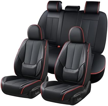 Coverado Car Seat Covers Full Set, Seat Covers for Cars, Black Car Seat Protector Waterproof, Nappa Leather Car Seat Cushion, Car Seat Covers Front Seats and Back Fit for Most Cars