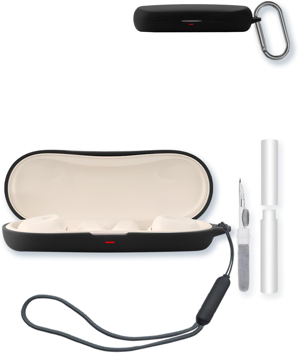 Case for Oladance OWS 2 Earbuds,Soft Protective,BOVUGAC Silicone Case Cover with Keychain & Cleaning Kit & Lanyard for Oladance OWS-Black