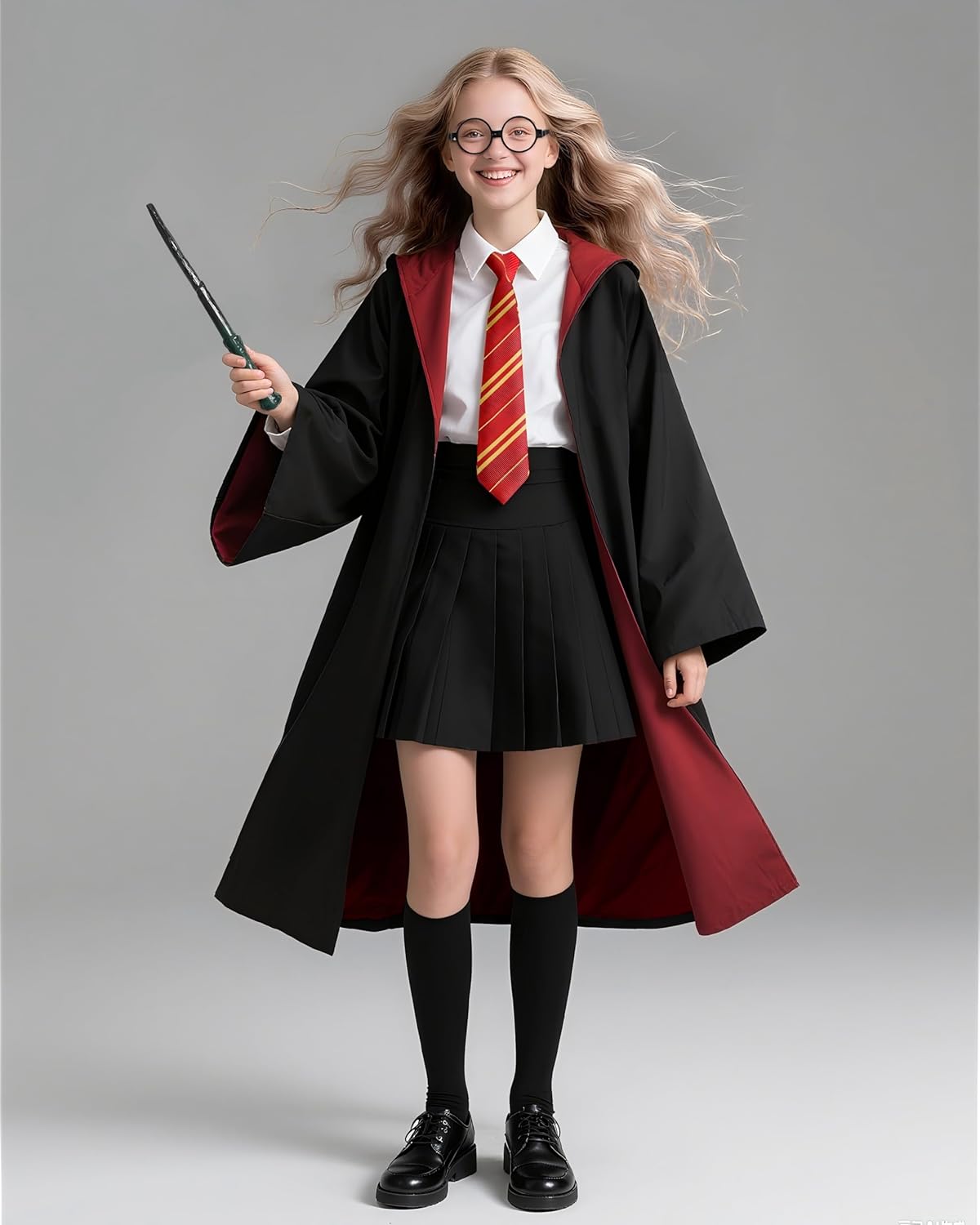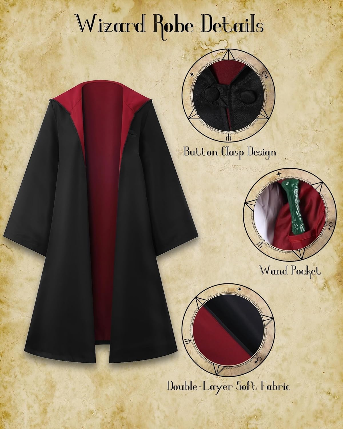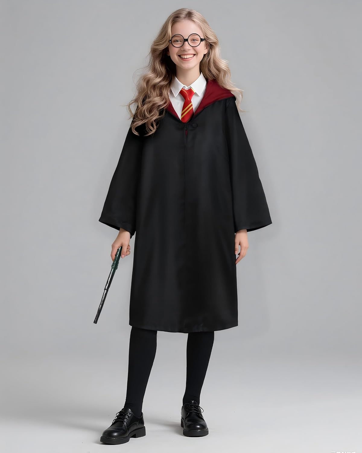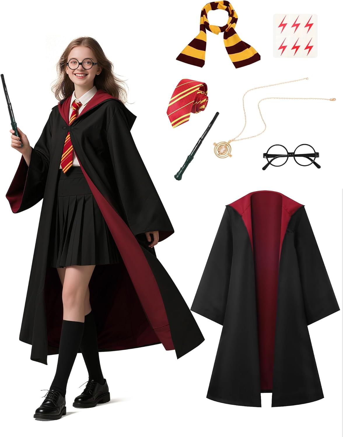 Unisex Magic Hooded Robe Wizard Cloak Adult Kids Halloween Costume for Women & Men Wizard Wand Ccarf Glasses Tie Set