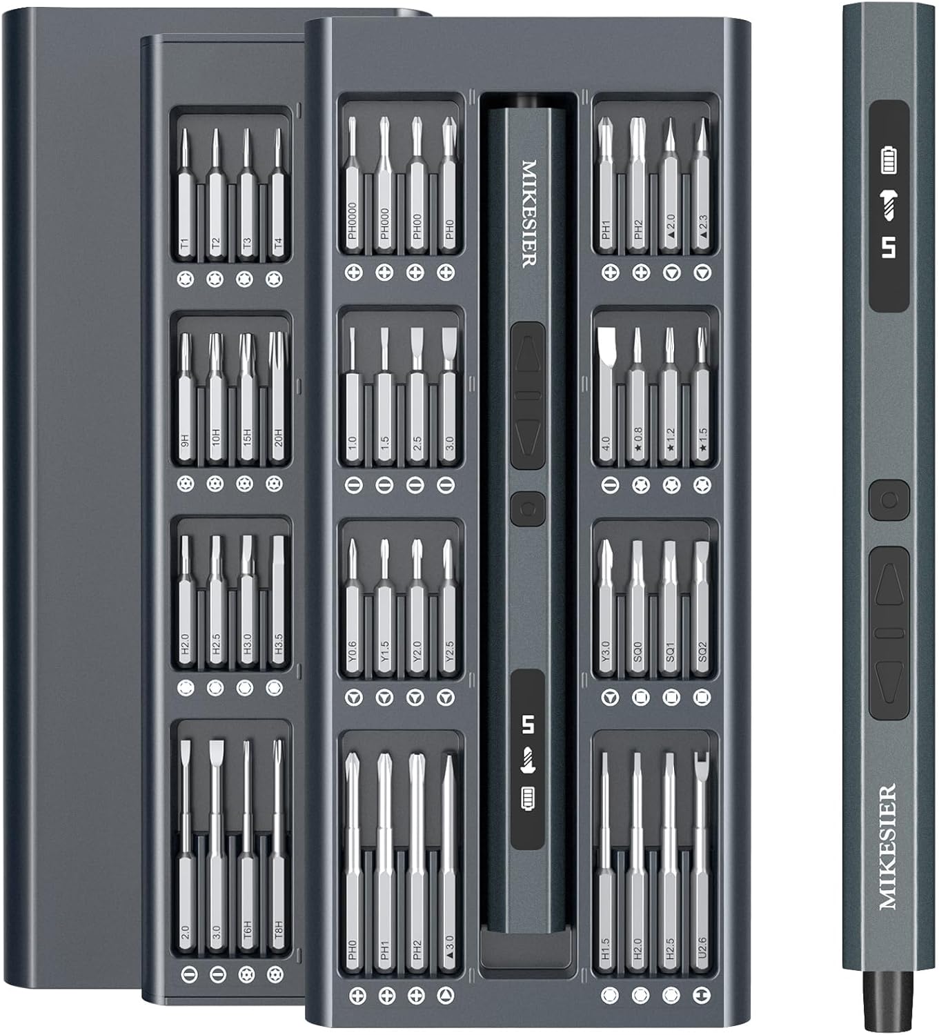 Smart Digital Display: The mini screwdriver set customize mode switch with 5 torque settings, the electronic display screen provides real-time information on gear level and power battery for personalized styling. This automatic screwdriver LED display forward and reverse rotation modes can also be easily monitored, making every task more efficient