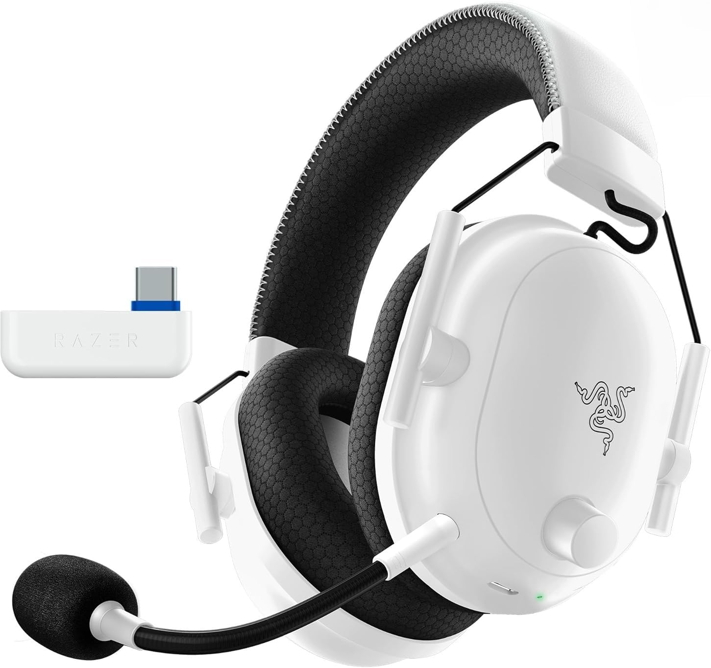 Razer BlackShark V2 Pro Wireless PlayStation Gaming Headset: 50mm Drivers - Super Wideband Mic - Plush Noise Isolating Earcups - for PS5, Console, PC, Mac - Bluetooth, USB-C - White (Renewed)