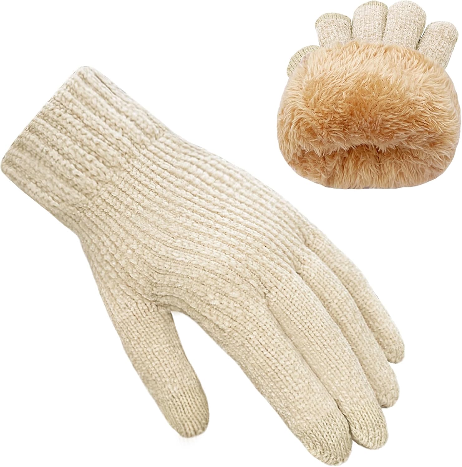 Winter Gloves for Women Chenille Touch Screen Thermal Fleece Knit Warm Elastic Gloves for Cold Weather