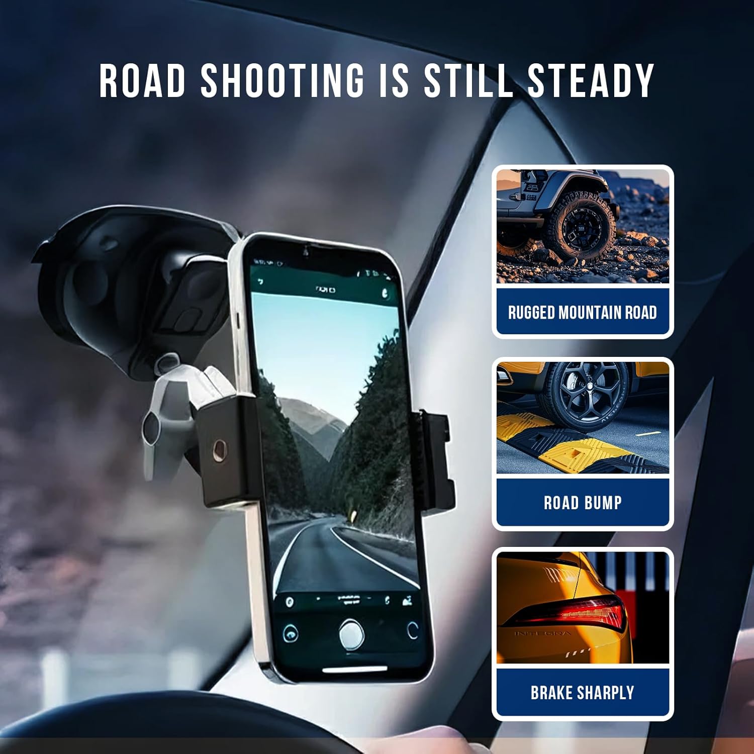 【Extra-large Suction Cup】: The phone mount is equipped with a suction cup featuring an upgraded ultra-strong suction force, three times stronger than ordinary suction cups. It can securely hold a 22lb object for 24 hours without detaching! It forms a sturdy and reliable connection with the dashboard or windshield inside the vehicle. Enhanced stability design, paired with a new aluminum alloy frame, ensures maximum durability and reliability, even on bumpy roads.