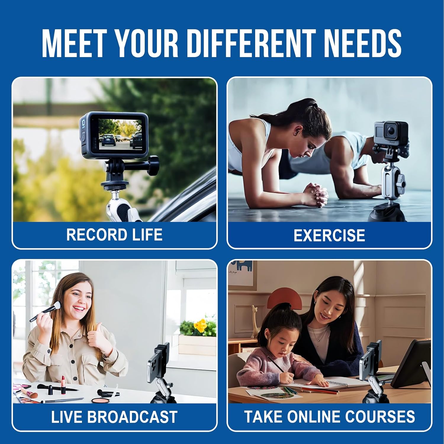 【Multi-functional Suction Cup Car Mount】: The suction cup car phone mount is compatible with most smartphones and action cameras. It can be installed on any smooth surface, such as car windows, sunroofs, dashboards, hoods, etc. Crafted with precision, it features a foldable design for easy portability and use. Ideal for scenarios such as mobile driving recording, video capture, selfies, live streaming, watching TV, and online learning.