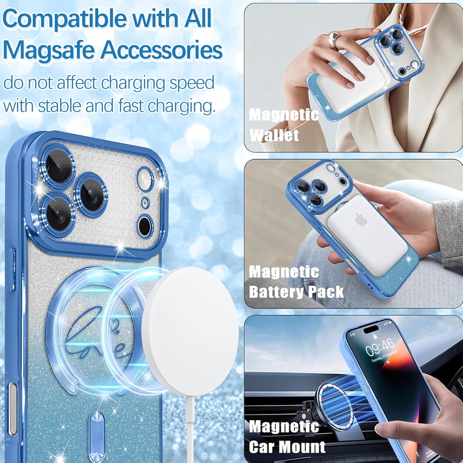 Magnetic Glitter Case Compatible with iPhone 17 Pro Max.Compatible with All MagSafe Accessories
