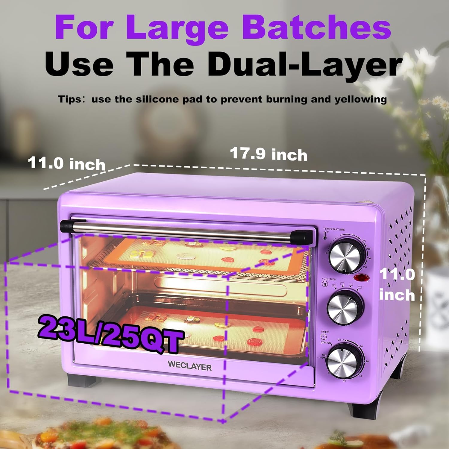 Precise Control for Perfect Results:Enjoy flexible creativity with an adjustable temperature range of 0–450°F and a timer that can be set up to 60 minutes—or use the "stay on" mode for continuous heating. For the most accurate readings, we recommend using the included oven thermometer (placed inside or hung on the heating tube), since mechanical dials may vary slightly from actual internal temperature. This way, you can achieve consistent, professional-level baking every time