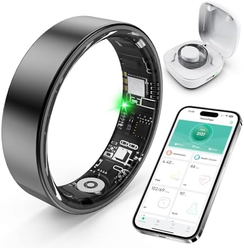 Smart Ring with Sleep Monitoring, Step Counting, Heart Rate, Blood Oxygen for iOS and Android, No Subscription Fee, IP68 Waterproof Health Tracker (Black, 8)