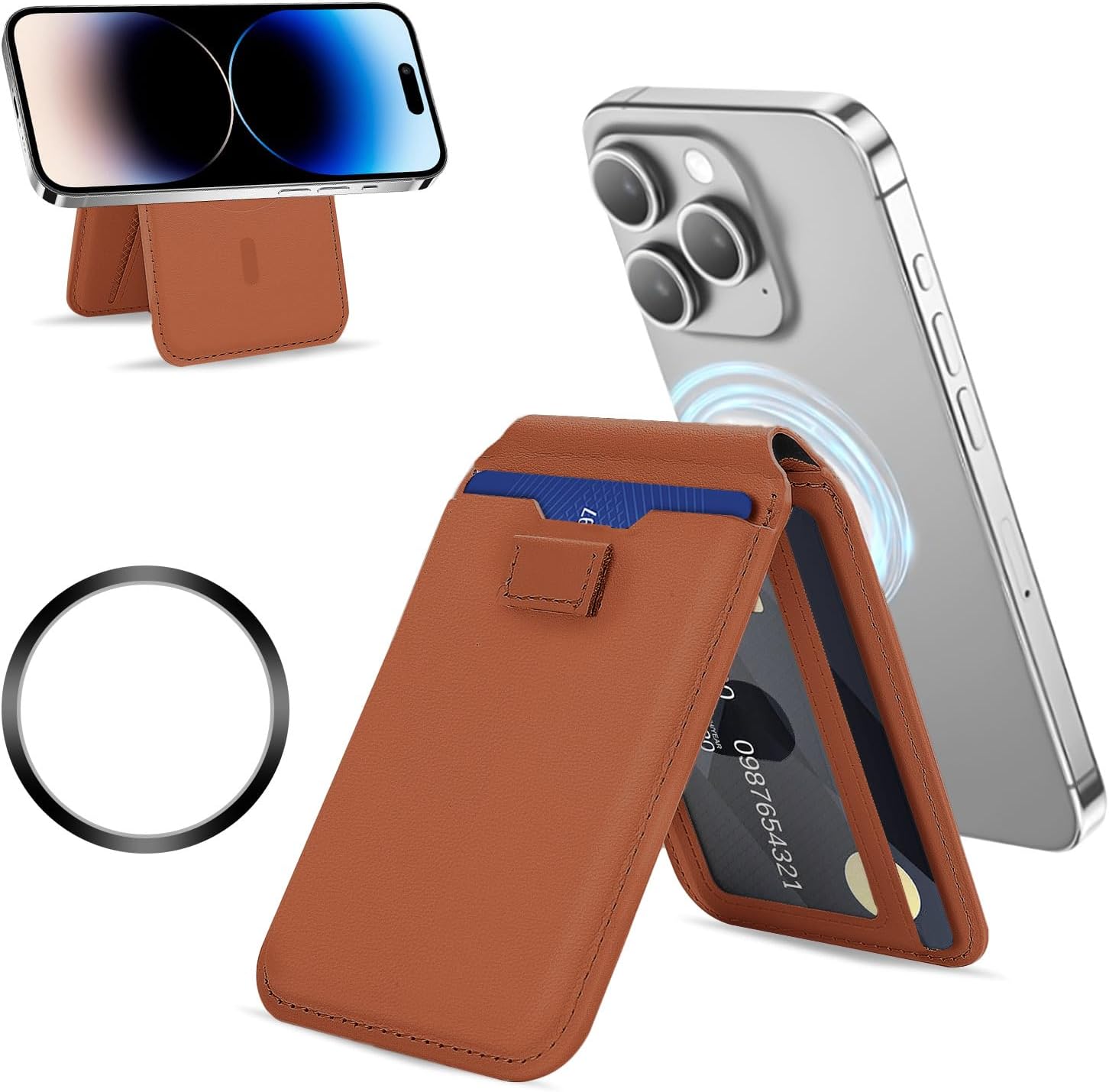 for MagSafe Wallet Stand, Multi-Slot,Compatible with iPhone Series, Super Strong Magnetism Strength, Slim, Features a Magnetic Ring, Compatible with Most Smartphones.Stylish Phone Wallet(Brown)