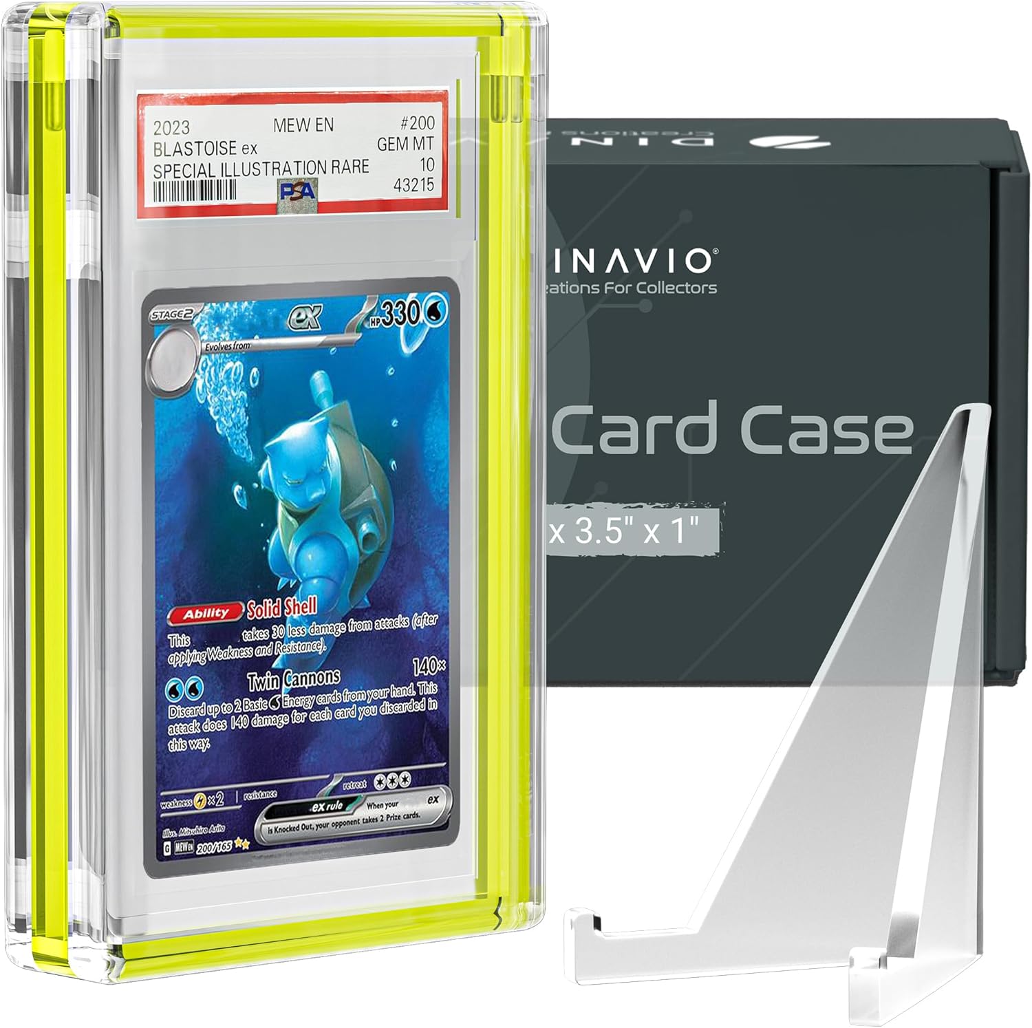 PSA Graded Card Display Acrylic Case for Standard PSA and CGC Slabs - Slab Case - PSA Card Case - Graded Card Display Case - Updated Dimensions - Stand Included (Yellow Border)