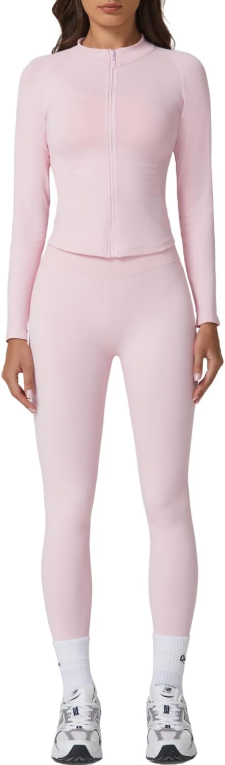 QINSEN Two Piece Workout Sets For Women Long Sleeve Athletic Jacket Matching High Waist Booty Lifting Pants Yoga Gym Outfits