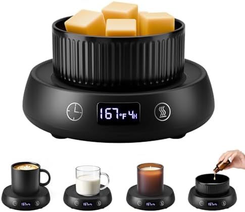 Smart Auto-Off Safety System: Choose preset timers (1H/2H/3H/.../9H) or default 8-hour shutoff for this wax melts warmer. Our energy-efficient desk warmer prevents overheating while you work - perfect for home and offices. Never worry about leaving your candle warmer on overnight. The coffee warmer has a digital display, so you never have to guess if you have it on the proper setting. They include an auto shutoff function and timer settings give you peace of mind if you forget to turn it off