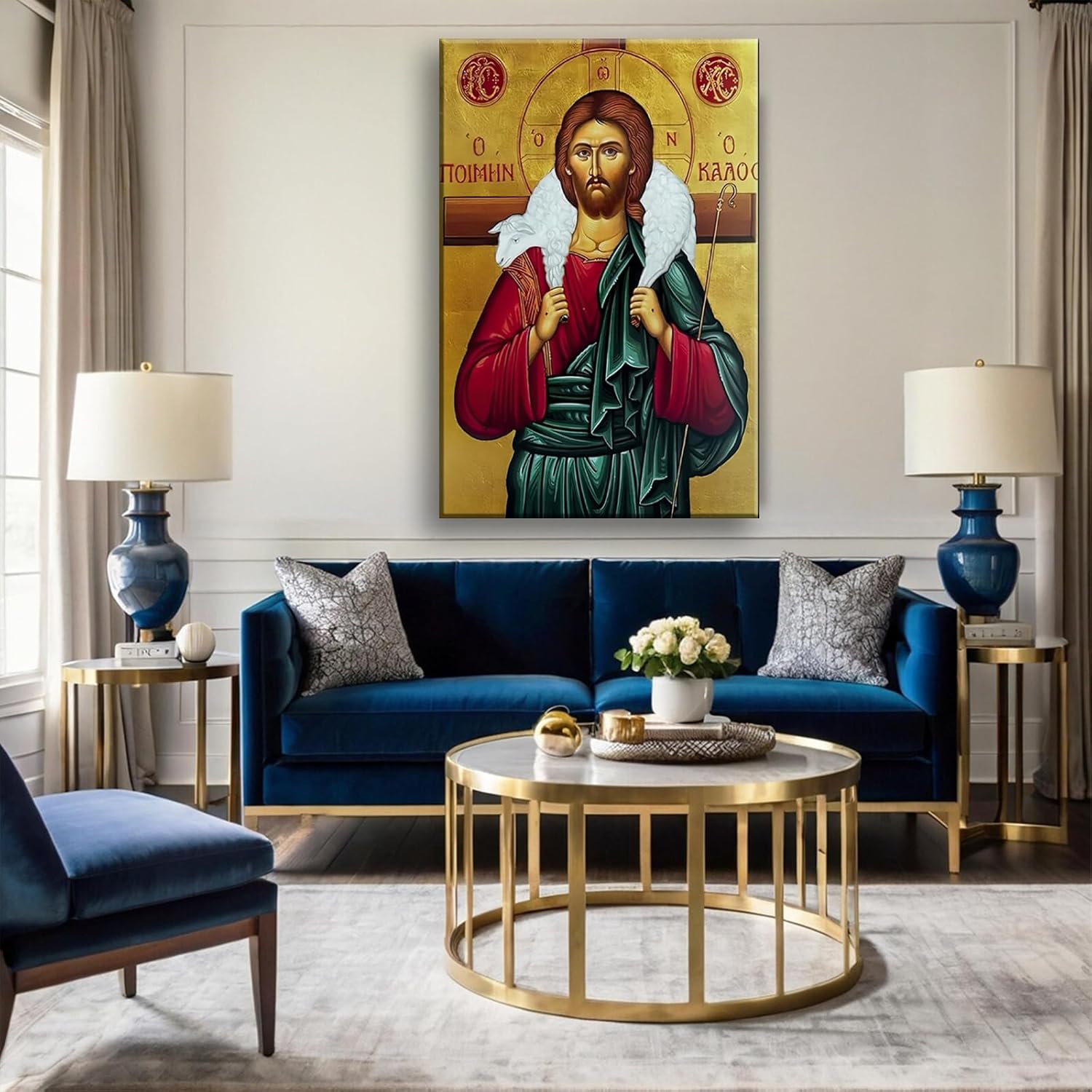 【High-Quality Prints】Jesus Christ Icon The Good Shepherd Wall Art, Mordern Ethnic Decor are printed on high quality canvas with UV-resistant inks that are anti-fading and toxic-free. Our plastic picture frame are perfect for creating a personalized, relaxing ambiance in any room.Whether you're decorating your bedroom, bathroom, or any coner, our framed wall art will add a touch of sophistication and warmth to your space.