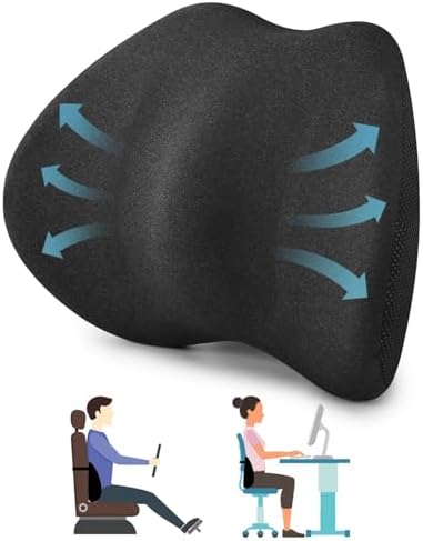 Lumbar Support Pillow for Car Seat & Office Chair, Soft Memory Foam Lower Back Support for Pain Relief and Posture Correction, Lumbar Pillow with Breathable Airflow Channels