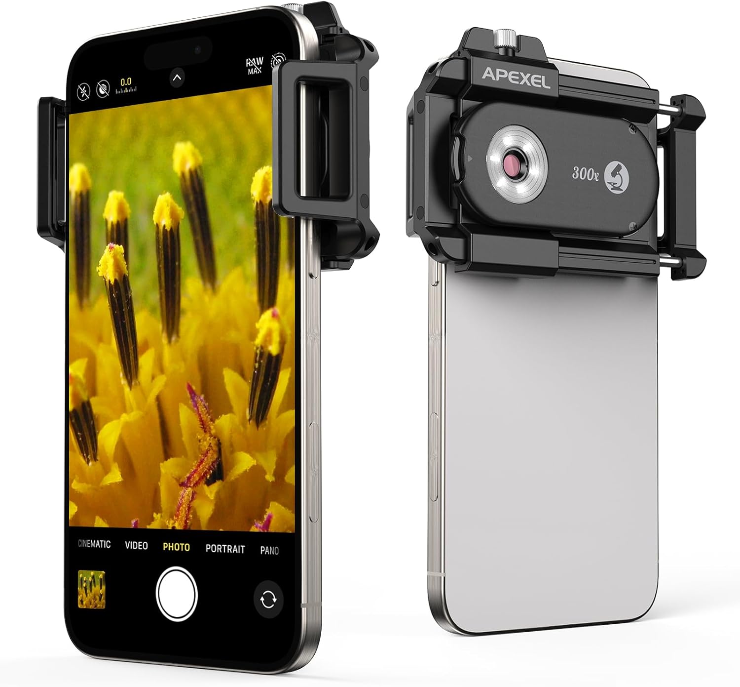 APEXEL 300X Phone Microscope Lens, Phone Camera Micro Lens with Universal Clip/LED Light/CPL, Mini Pocket Microscope, Phone Lens Attachment Fit for iPhone 16/15/14/13, Samsung, and Most Smartphone