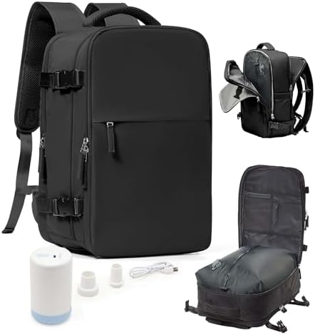 Vacuum Seal Travel Backpack with Air Pump Compression Vacpack Waterproof Carry On Backpack for Travel Women men with Vacuum System Laptop Airlines Approved Daypack Space Saver Bags Black