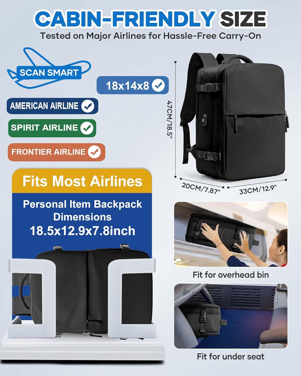 ✅Airline Approved Backpack - Save on check-in fees by meeting major airline carry-on baggage size standards. Reduces the risk of lost luggage. The back can be snapped on to the trolley handle to create an integrated mobility solution, allowing you to travel through airports with ease.