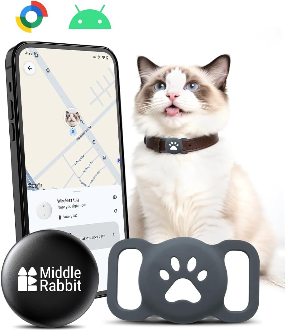 Cat Tracker for Android Only – GPS Pet Tracking Smart Tag for Cat Collars, Android Airtag, Animal Finder, Compatible with Google Find Hub App