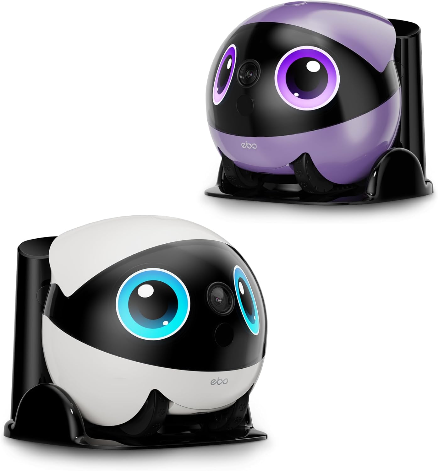 3K Home Camera Robot EBO Air 2 Plus: Movable Robot Companion, 2-Way Video, AI Chat, Custom Facial Image (Purple + White Bundle)