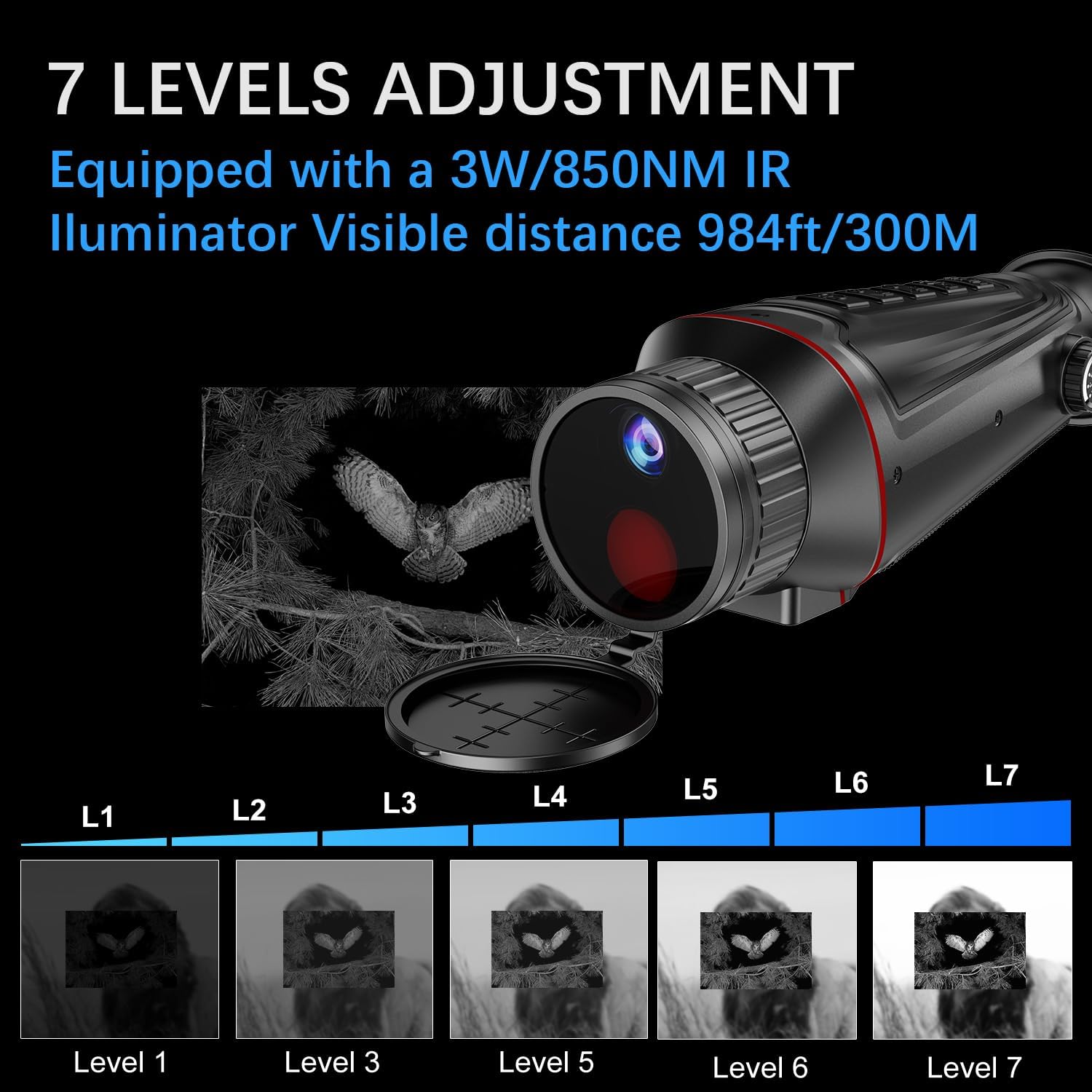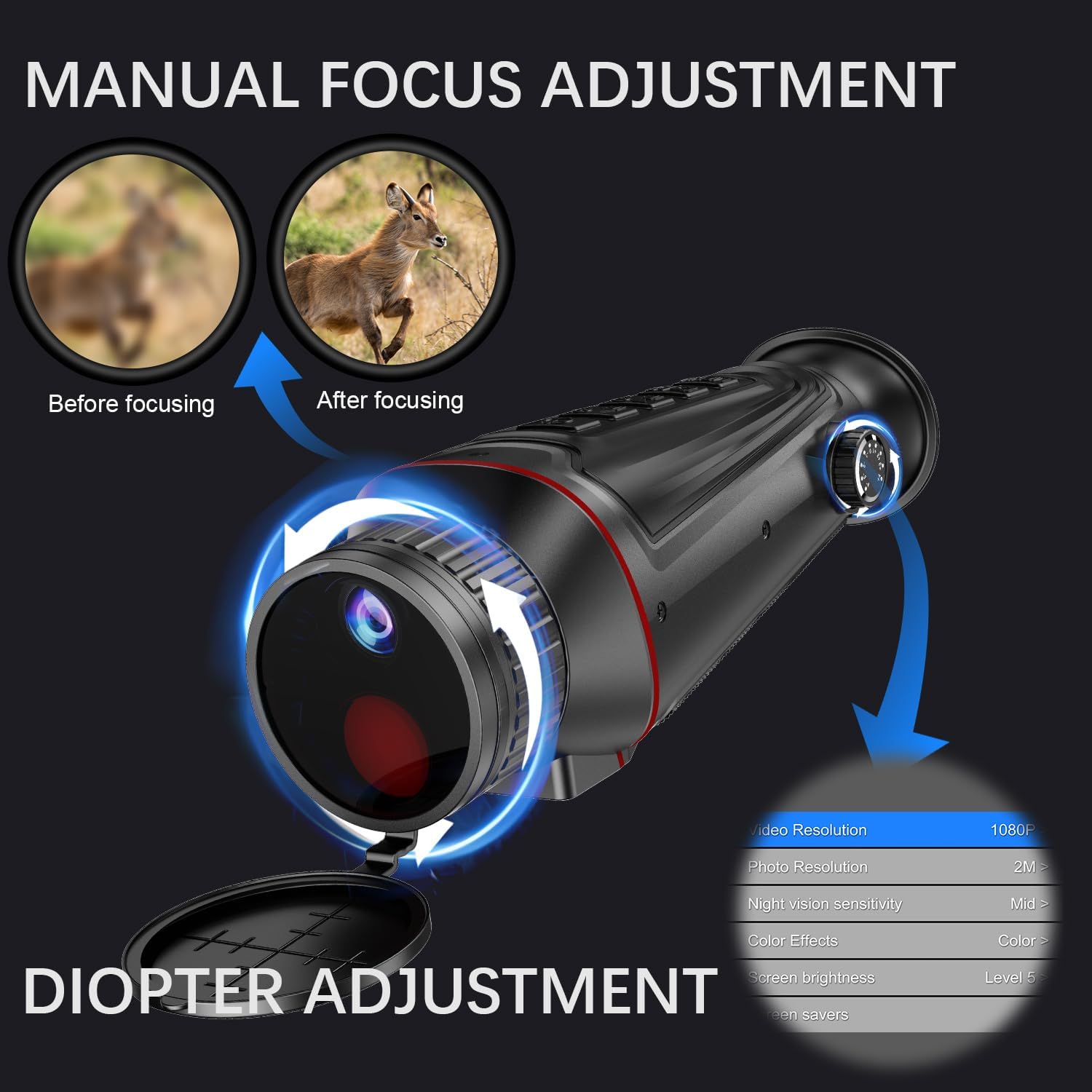 【Versatile Zoom for Detailed Observation】The monocular night vision features a fully multi-coated 25mm objective lens technology, enhance 8X digital zoom to help focus distant objects quickly; Experience optimal clarity through 1X optical zoom, while the precision of 8X digital zoom options captures distant objects with finesse. Designed for hunters and wildlife enthusiasts, this monocular offers unmatched versatility.