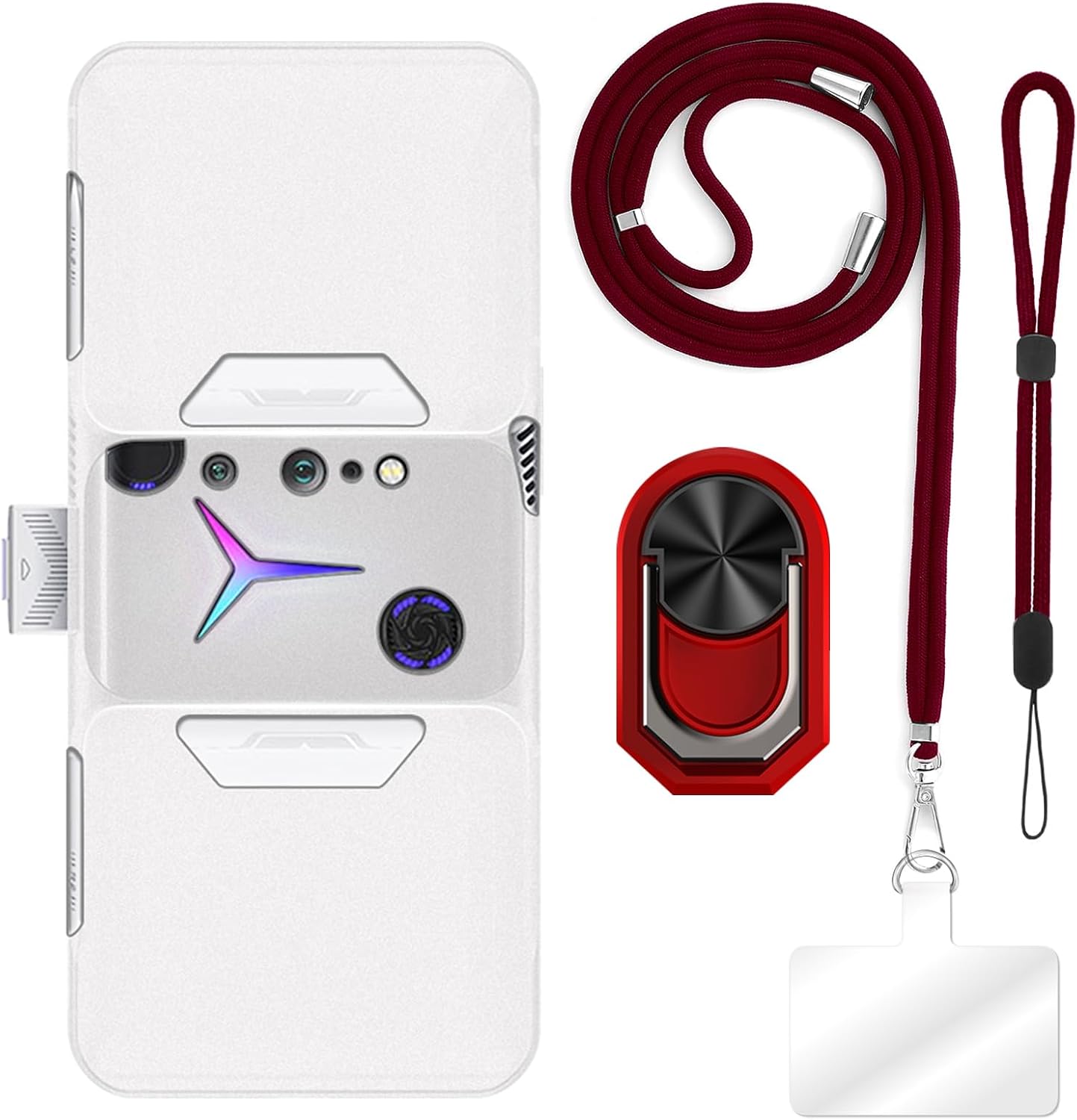 ESCAMOT [4 in 1] Case Compatible with Lenovo Legion Phone Duel 2 L70081 with Lanyard, Wrist Strap and Ring Holder, Protective Cover Anti-Drop Secure Travel Kit (White+Red Set)