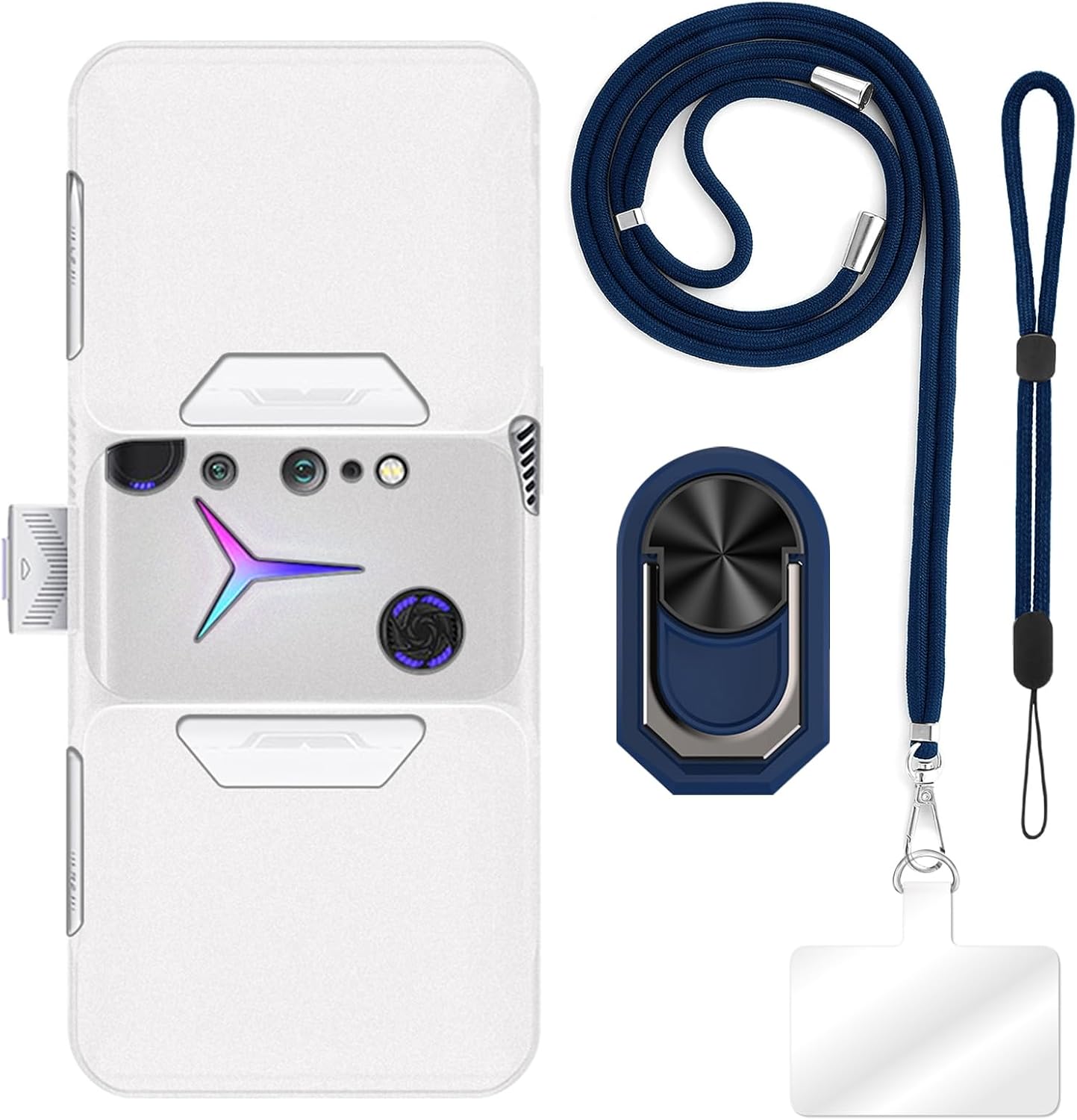 ESCAMOT [4 in 1] Case Compatible with Lenovo Legion Phone Duel 2 L70081 with Lanyard, Wrist Strap and Ring Holder, Protective Cover Anti-Drop Secure Travel Kit (White+Blue Set)