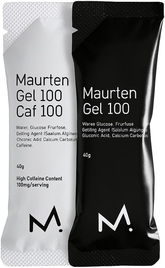 【THE BEST OF BOTH WORLDS】The Maurten Gel100 Mix Box combines Energy Gel100 and Gel100 CAF100 (100mg of caffeine equals 1.5 cups of espresso or 1 cup of filter coffee). Unlike conventional syrup blends, Gel100 is a hydrogel with a unique fructose-to-glucose ratio (0.8 : 1).