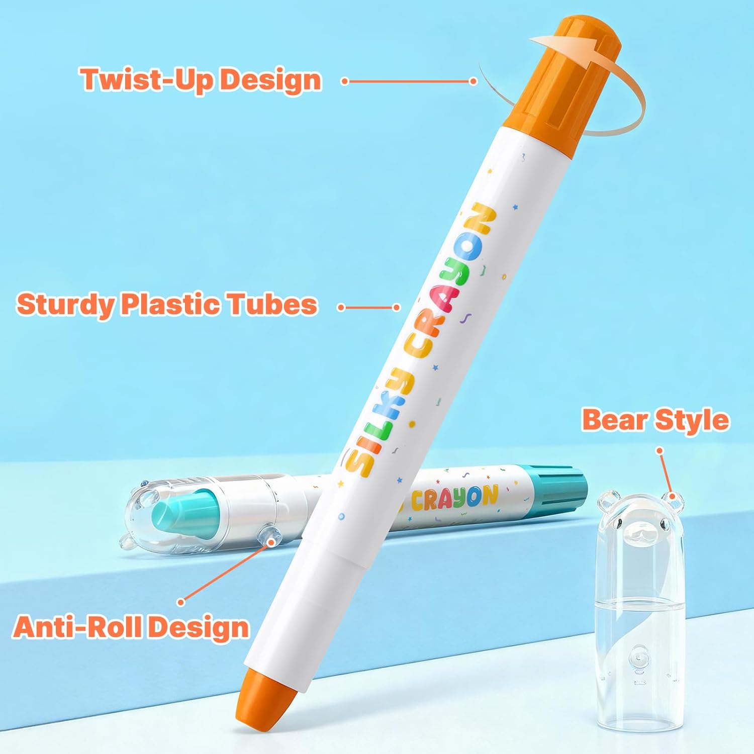 ✨ Easy-Grip Twistable Crayons - No Break, No Mess! Designed for tiny hands, our chunky twistable crayons are a dream to hold! The protective twist-up case prevents breaking and keeps hands clean. Kids gain confidence while building fine motor skills through frustration-free coloring