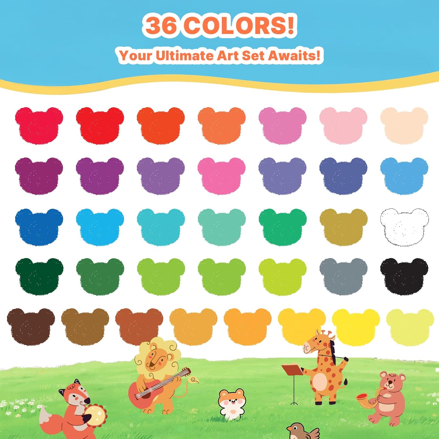 🎨 The Ultimate Toddler Art Set - 36 Colors & More! Everything for creative fun! This all-in-one jumbo crayon set includes 36 vibrant colors, 20 animal stickers, and a paint brush. Perfect for dry coloring, blending, and sticker art—sparking creativity and hours of screen-free play for ages 2-6
