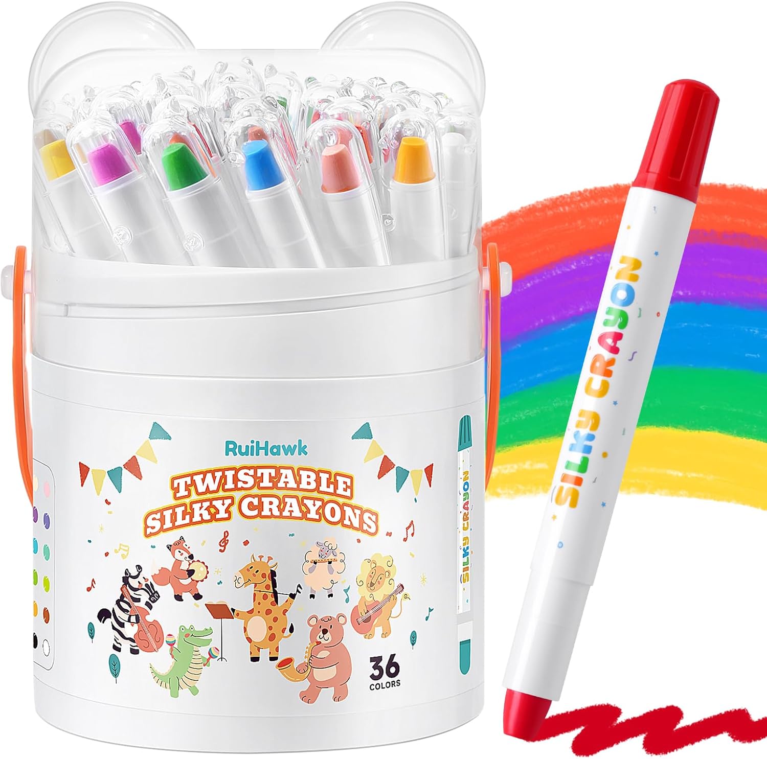 Twistable Crayons Set for Toddlers - 36 Colors with 150 PDF Pages, Stickers & Brush, Non-Toxic, Washable, Easy-Grip & Ultra-Silky Smooth Art Supplies, Ultimate Gift for Kids Ages 2-8