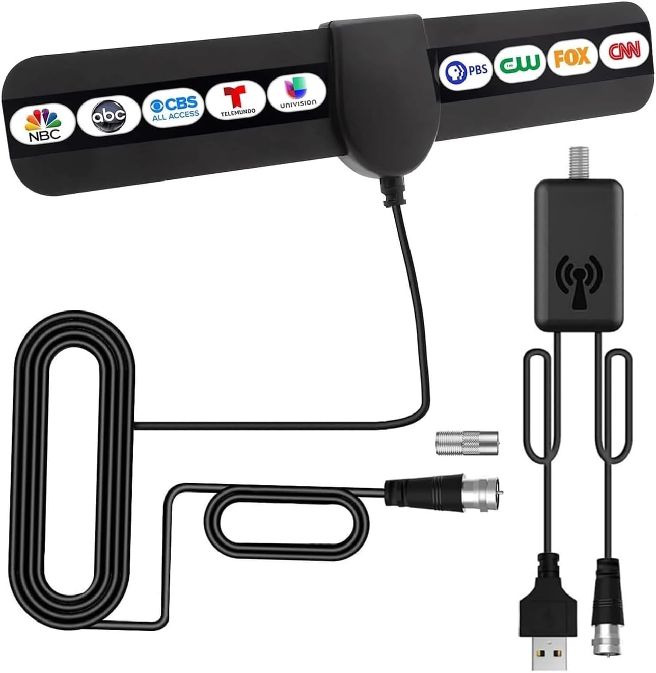 360° Long Range Reception TV Antenna -- The best antenna for local channels and live news stationsDigital HDTV antenna with 10 ft coaxial cable, amplifier signal booster, spare sticker,easy and convenient to use.HD TV antenna can reach 200 miles long and can be placed almost everywhere at home.
