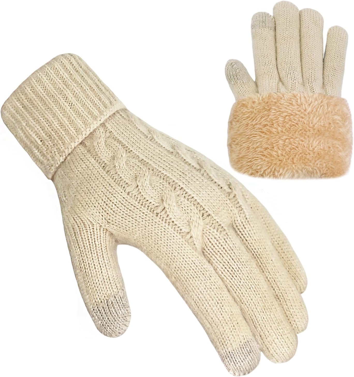 Winter Gloves for Women Wool Warm Touchscreen Thermal Fleece Stretchy Knit Gloves for Cold Weather Winter Gifts